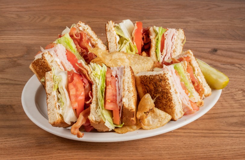 Crispy bacon, fresh turkey, lettuce, tomato and mayonnaise, served on white bread with fries.